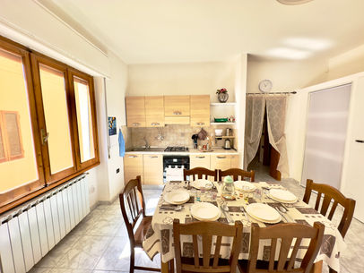 La casa è pensata per soggiorni comodi e pratici: spazi ben distribuiti, ambiente luminoso e tutto ciò che serve per una vacanza in Toscana senza stress. Il soggiorno è ampio e accogliente, con cucina attrezzata, tavolo da pranzo e accesso al balcone: perfetto per colazioni lente o per organizzare le giornate di visita.